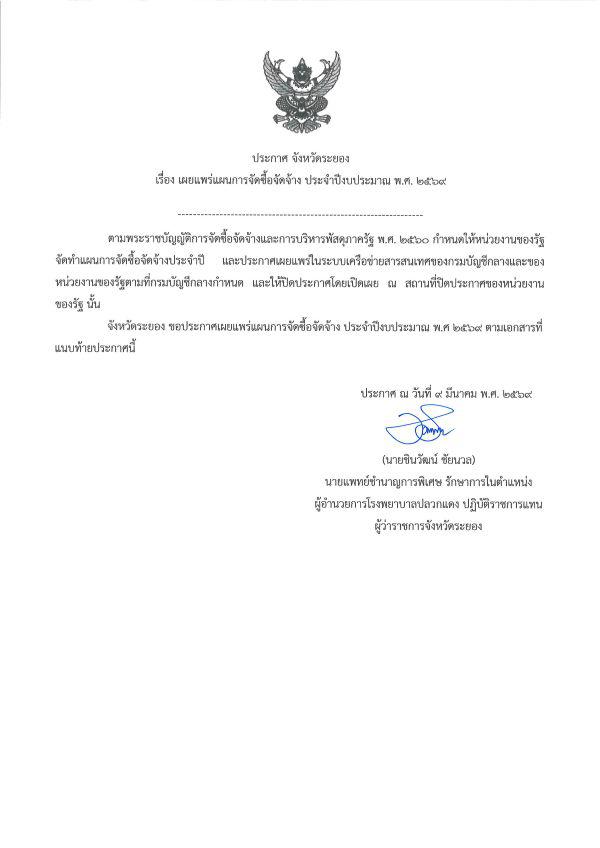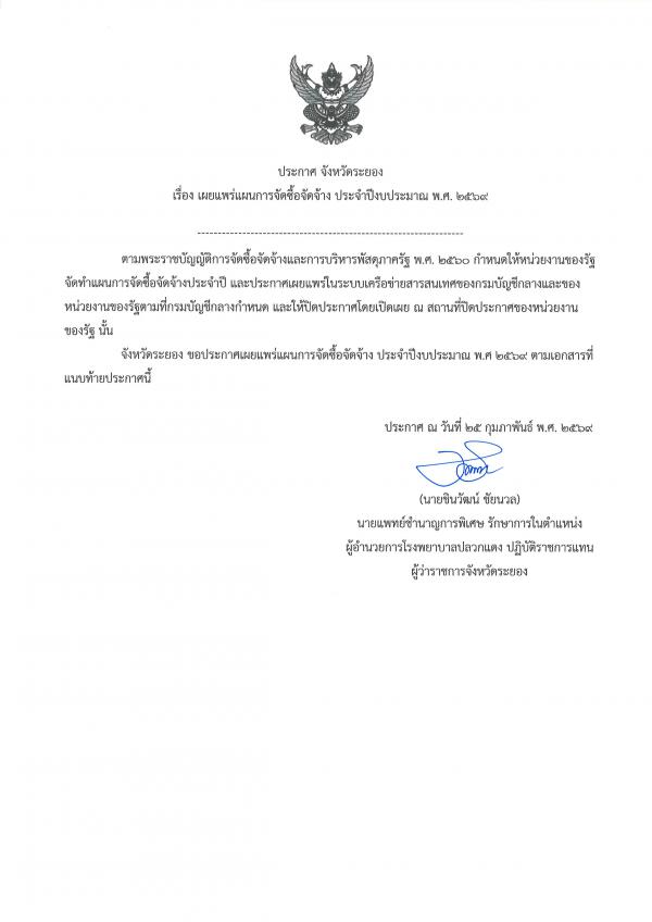 | อ่าน 40 ครั้ง ประกาศเผยแพร่แผนการจัดซื้อจัดจ้าง ประจำปีงบประมาณ พ.ศ. ๒๕๖๙